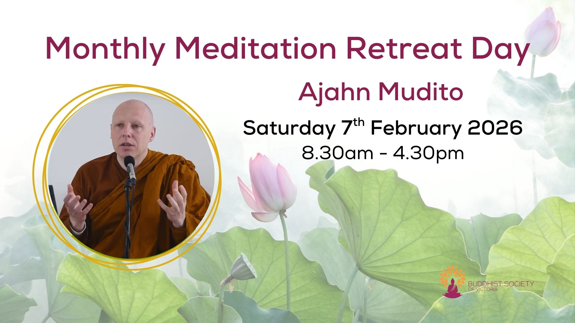 Buddhaloka Centre 71 Darling Road, Malvern East, VIC, AustraliaA digital detox. A meditation day without a screen | Led by Ajahn Mudito Saturday 7th February 2026 8.30 am to 4.30 pm BSV Buddhaloka Centre, 71 Darling Road, Malvern East, […]